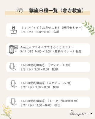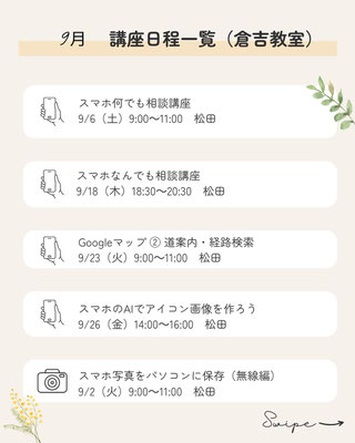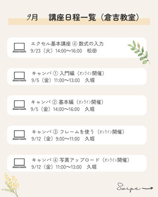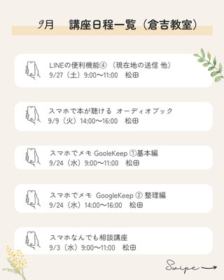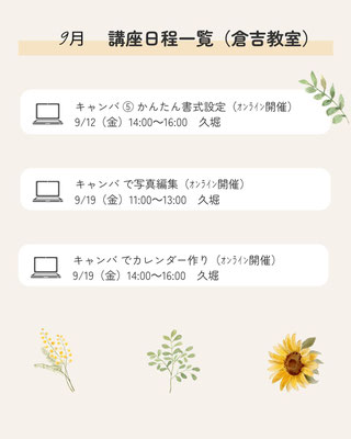 9月の講座予定です。