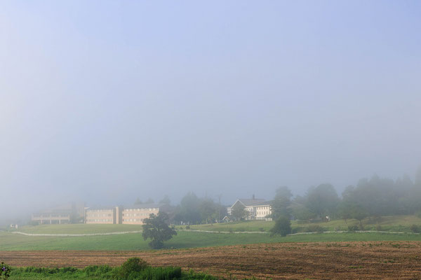 すっかり夜が明けたので郷に下りると深い霧の中だった。