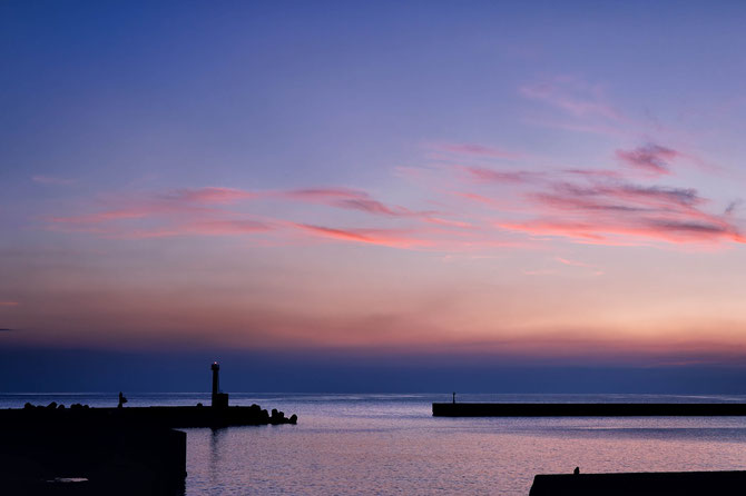カメラ片手に、夜明け前の静かな港をぶらぶらと歩く。