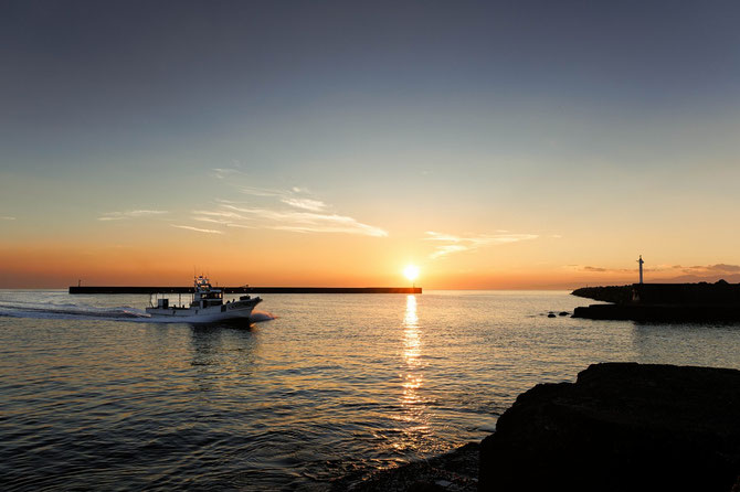沖へ出ていた漁船が次々と港に帰ってくる。