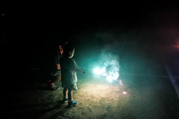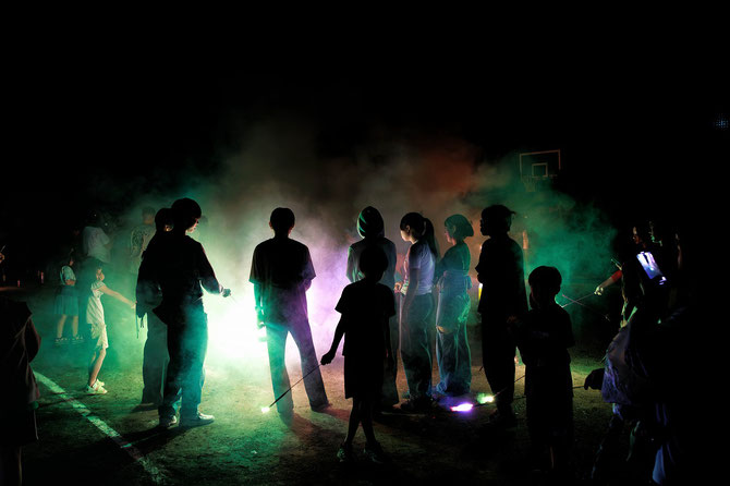 クライマックスは大きな打ち上げ花火だけれども、誰でも参加できる「手持ち花火」が一番盛り上がります。